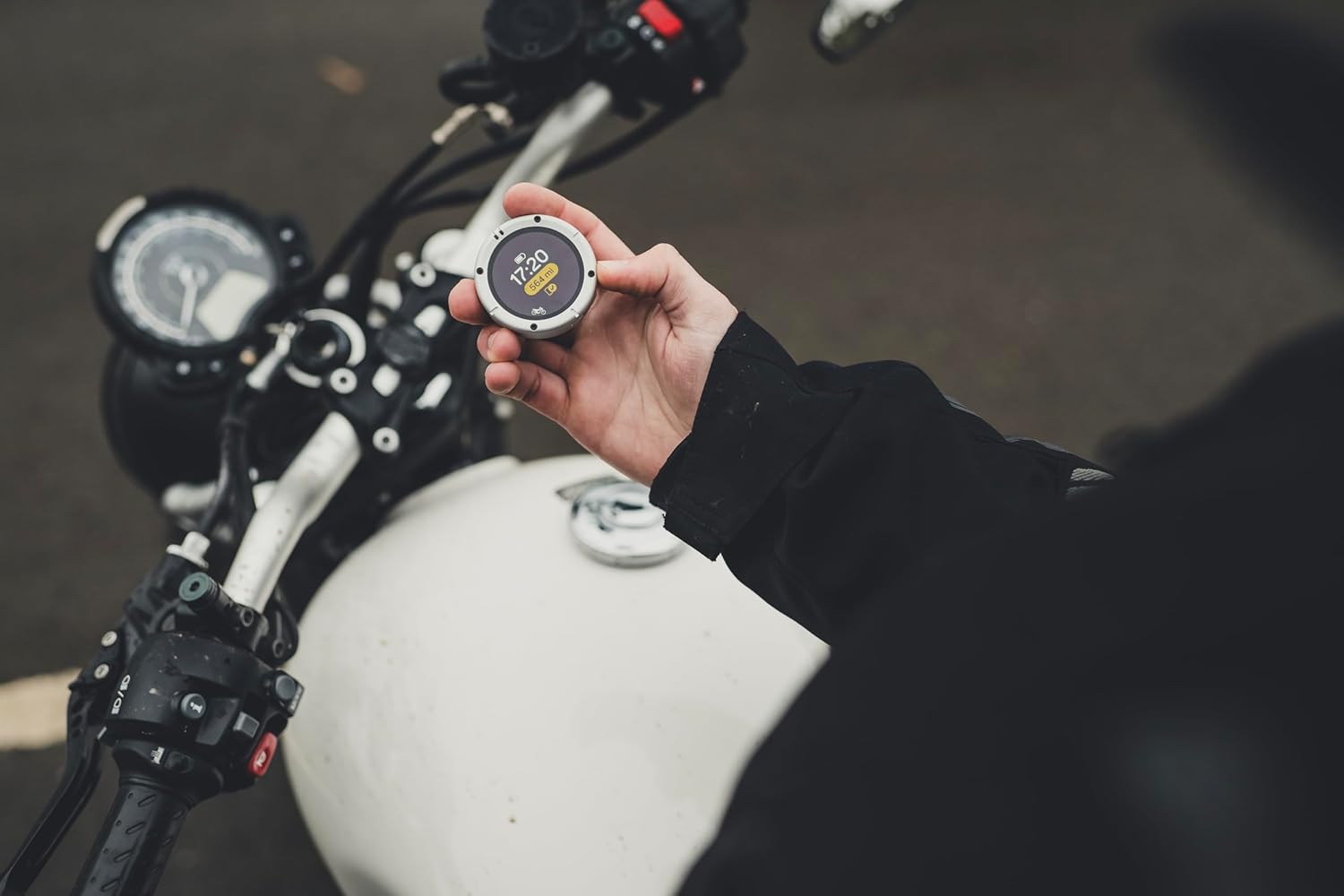 The Beeline Moto II is a compact, glove-friendly motorcycle GPS tracker designed to enhance both daily commutes and adventurous rides. It features a distraction-free mini-map display that shows essential ride data like speed, distance, and ETA at a glance, helping riders stay focused on the road. Built with IP67 waterproofing and a shockproof casing, it’s engineered to withstand harsh weather and rugged terrain. The sleek metal design mounts easily to handlebars and includes a USB-C rechargeable battery with up to 14 hours of life. Riders can plan routes using either fast or scenic “fun” modes, and the intuitive interface makes it easy to operate even with gloves on. Whether you're navigating city streets or winding backroads, the Beeline Moto II offers a minimalist yet powerful navigation experience tailored for motorcyclists.